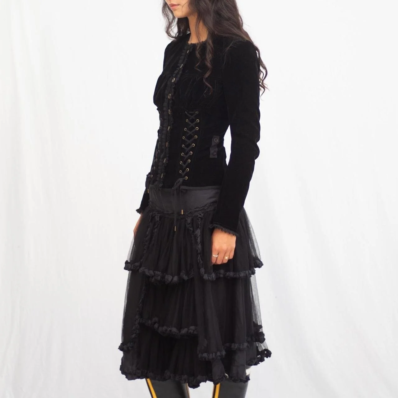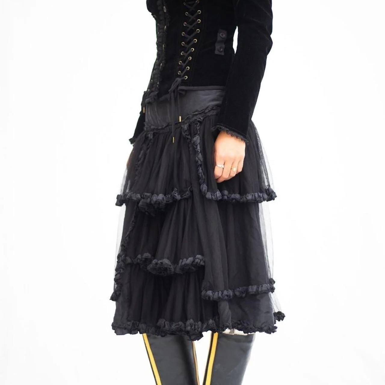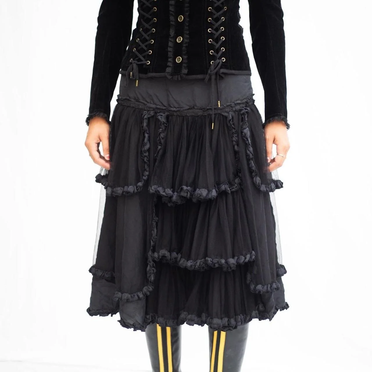 witchy john paul gaultier witchy layered skirt with tulle and ruffle detailing