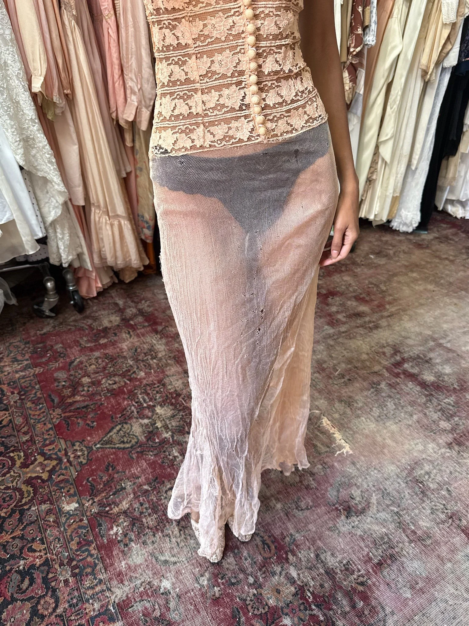 1920s crinkled silk chiffon dress with white crystal embellished belt to cinch the waist