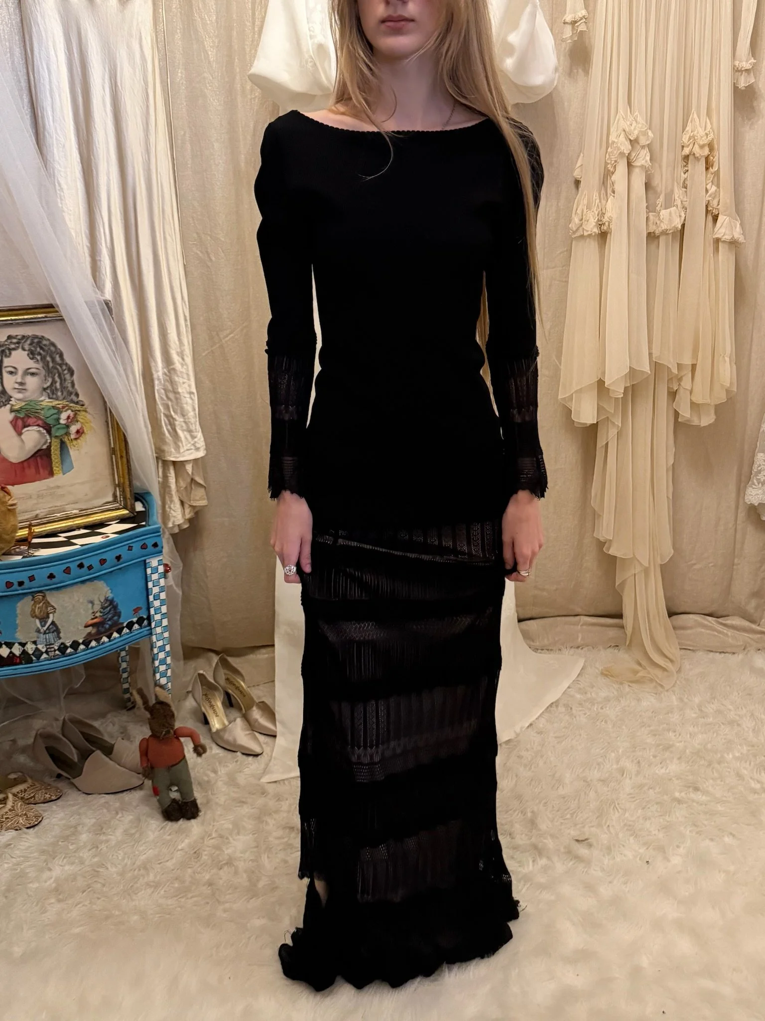 simplistic , with a floral beaded motif as the attention of the dress. lace details on the hem add lightness.